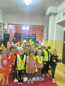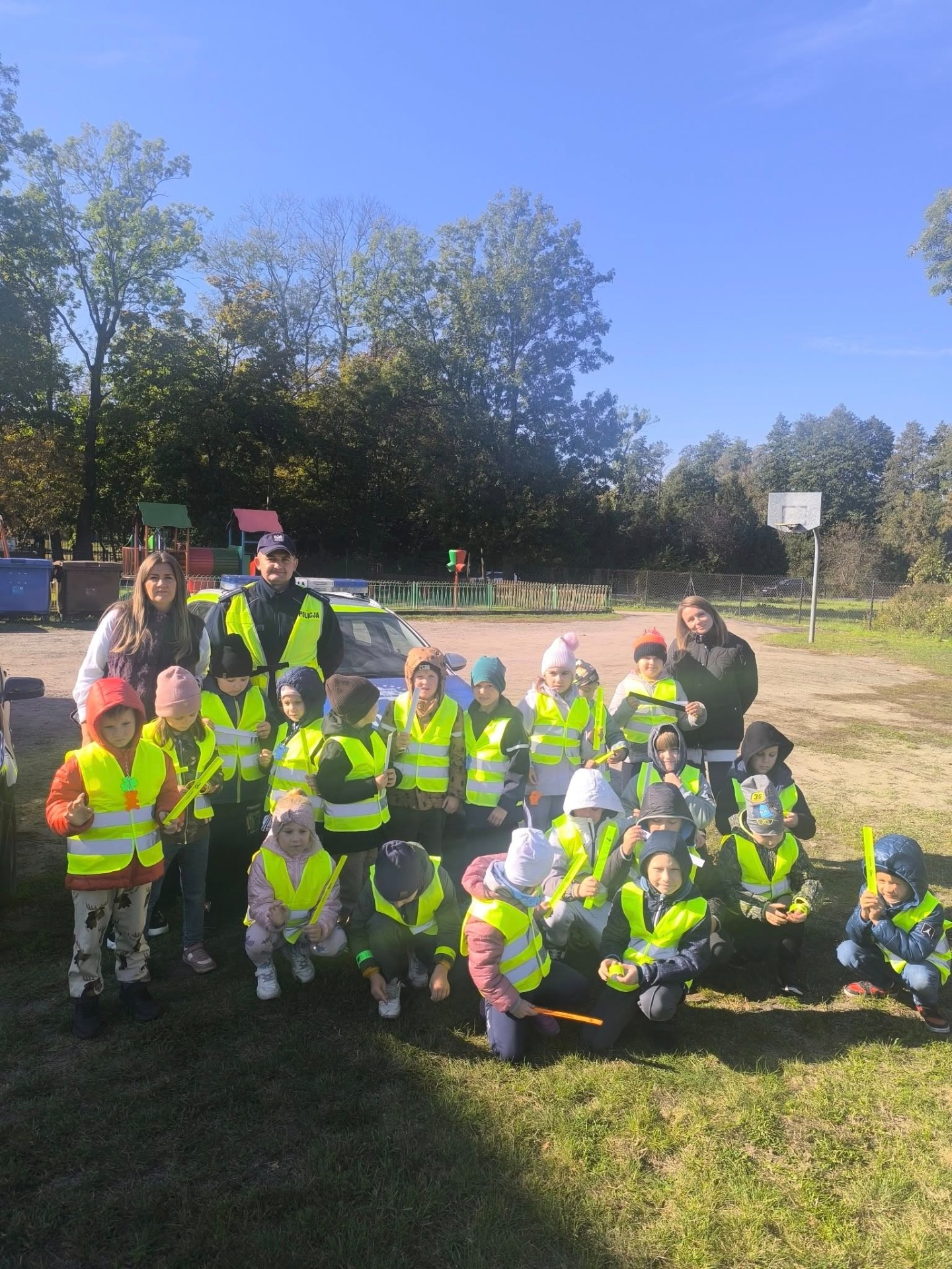 Naszych pierwszoklasistów odwiedził dzielnicowy dr Łukasz Drdzeń. Podczas spotkania uczniowie dowiedzieli się, jak bezpiecznie poruszać się po drogach, jak prawidłowo przechodzić przez przejście dla pieszych oraz dlaczego noszenie odblasków jest tak ważne. Każde dziecko otrzymało odblask, który będzie im przypominał o zasadach bezpieczeństwa. Nie zabrakło także praktycznej lekcji – wspólnego ćwiczenia przechodzenia przez przejście dla pieszych.