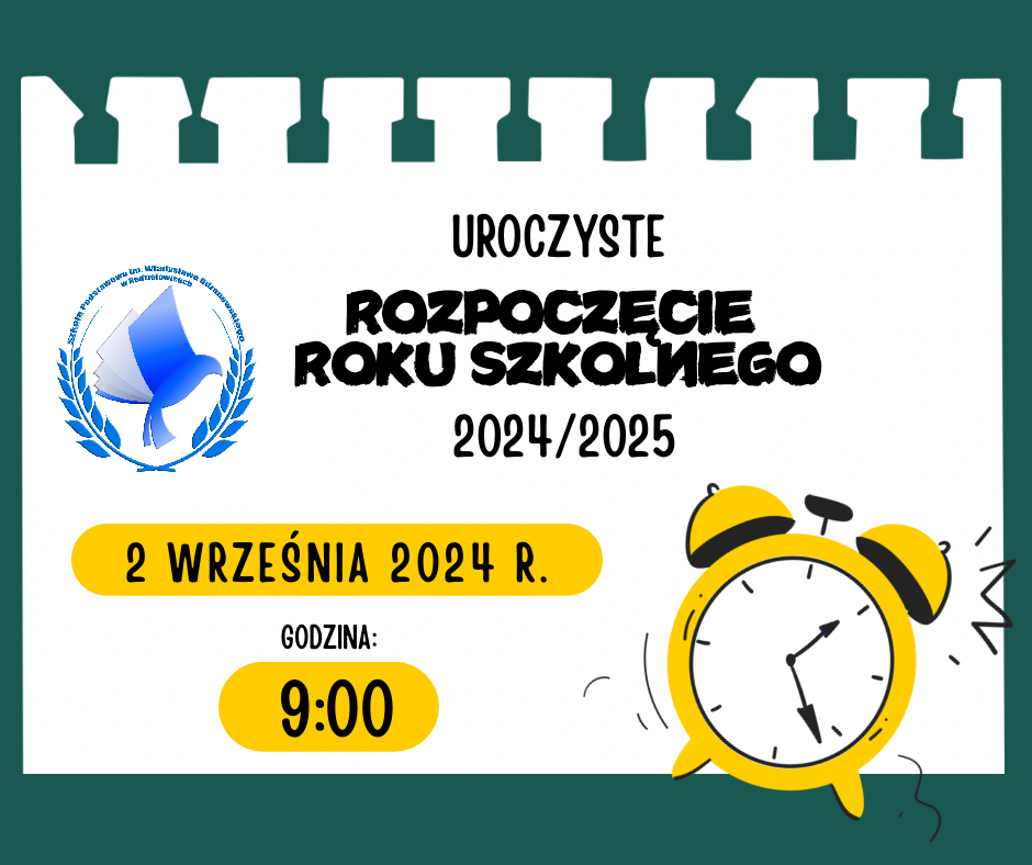Serdecznie zapraszamy 2.09.2024r. klasy 1-8 na Uroczyste Rozpoczęcie Roku szkolnego 2024/2025.